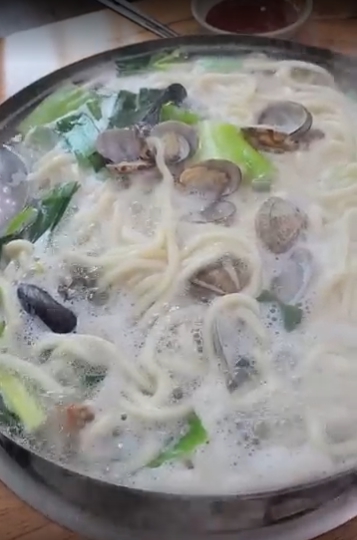 - 면발: 굴을 어느 정도 건져 먹다 보면 드러나는 면발! 기계면이지만 쫄깃하고 부드러워 굴 육수와 잘 어울립니다.