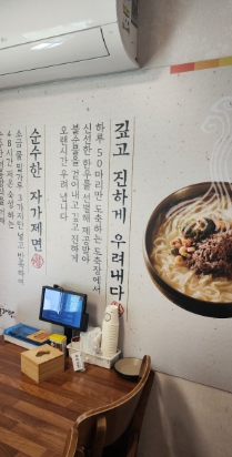 - 예스키즈존: 어린이 메뉴와 유아 의자가 준비되어 있어 아이 동반 가족들도 편안하게 식사할 수 있습니다. 맵지 않은 한우 사골 칼국수나 평양만두도 있어 아이들 먹거리 걱정도 없답니다.
