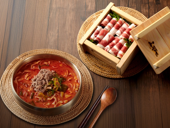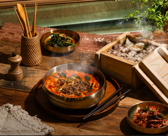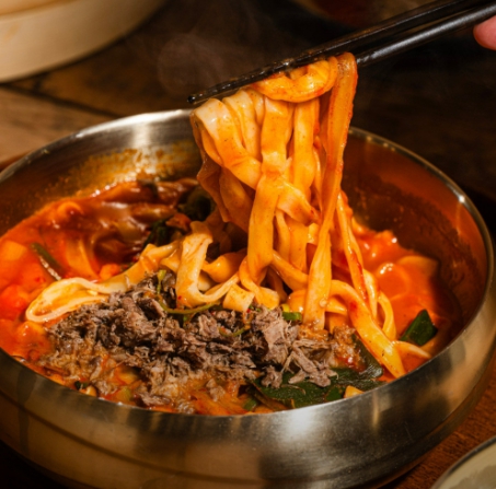 이곳의 메인 요리인 육개장 칼국수는 단순히 맵기만 한 국물이 아닙니다. 한식 명인의 철학이 담겨 있죠.
