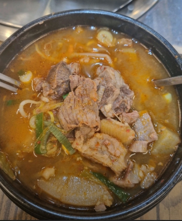 - 푸짐한 건더기: 숟가락으로 뜨면 고기가 한가득! 여기에 무, 파, 콩나물 등 채소가 어우러져 국물이 진하면서도 시원하고 얼큰합니다.
