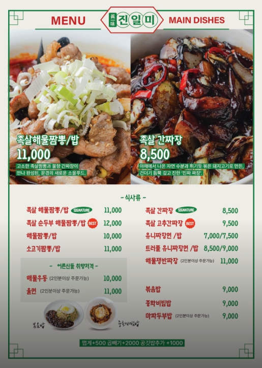 진일미 메뉴판