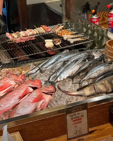 이곳의 메뉴는 신선함이 생명입니다. 주문 즉시 눈앞에서 구워지는 꼬치와 생선구이는 술을 부르는 최고의 안주죠!