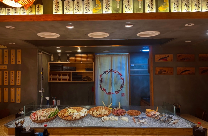 '로바다야끼소담'은 손님 앞에서 생선이나 고기, 채소 등을 구워주는 일본식 요리점인 '로바다야끼' 스타일을 제대로 구현한 프리미엄 이자카야입니다.