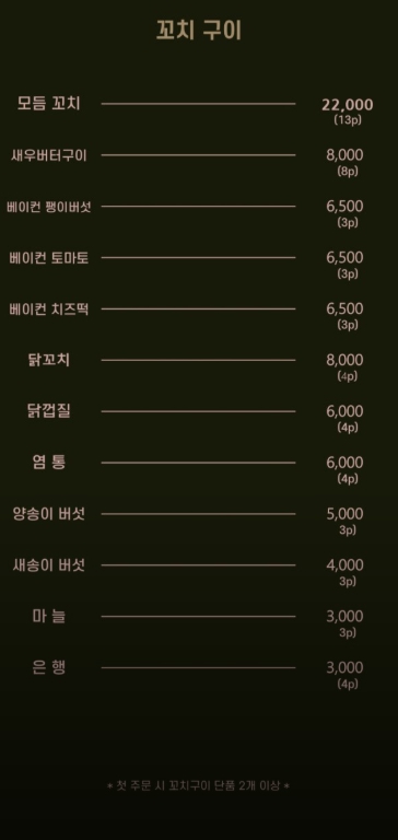 1. 꼬치 1종 무료: 네이버 플레이스 쿠폰 사용 후 리뷰 작성 시 제공!