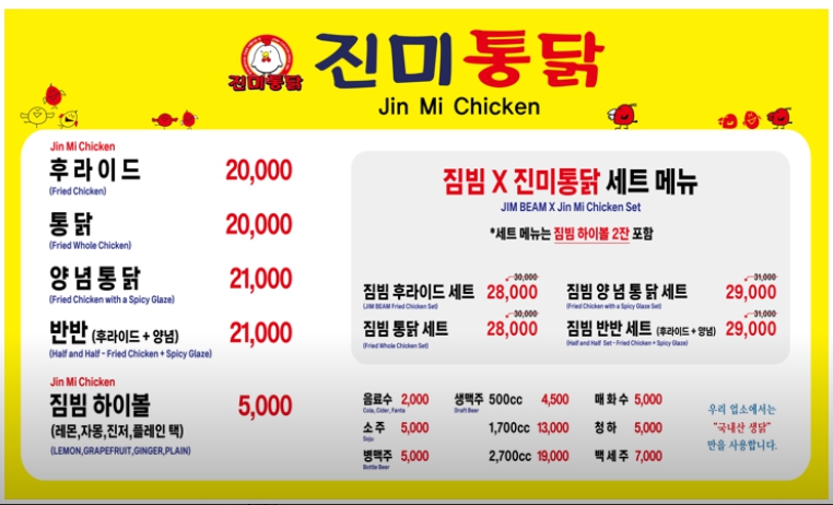 - 가마솥 통닭: 이곳의 가장 큰 특징은 커다란 가마솥에서 튀겨낸다는 점입니다. 높은 온도의 가마솥에서 튀겨내어 튀김옷이 얇으면서도 극강의 바삭함을 자랑합니다.