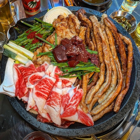 - 구성: 곱창 + 대창 + 차돌박이 + 염통을 한 판에 모두 즐길 수 있는 알찬 구성입니다.