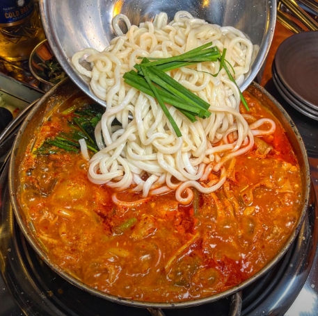 • 메뉴 소개: 곱창구이 먹고 난 뒤, 혹은 소주 안주로 최고인 얼큰한 전골입니다.