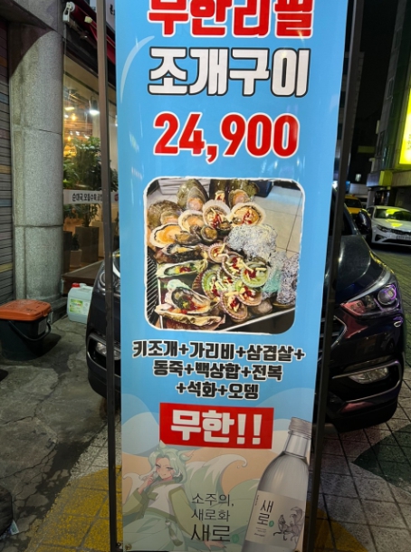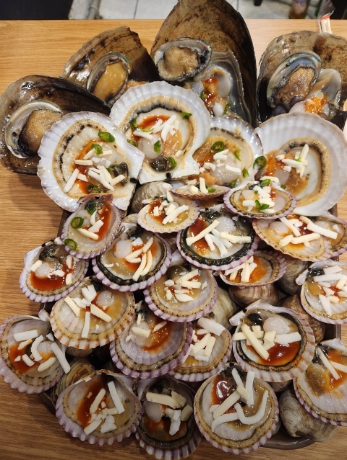 - 치즈 추가 필수: 조개구이에 치즈 듬뿍 올려 초장 뿌려 먹으면 맛이 2배! (치즈와 소스 조합 강추)