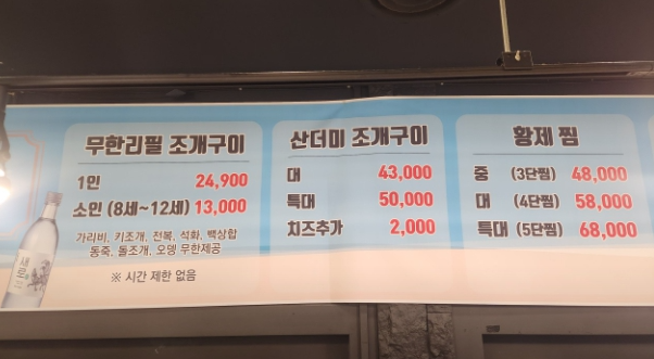 무한리필이 부담스럽다면 단품이나 찜 메뉴도 훌륭합니다.