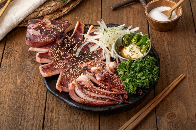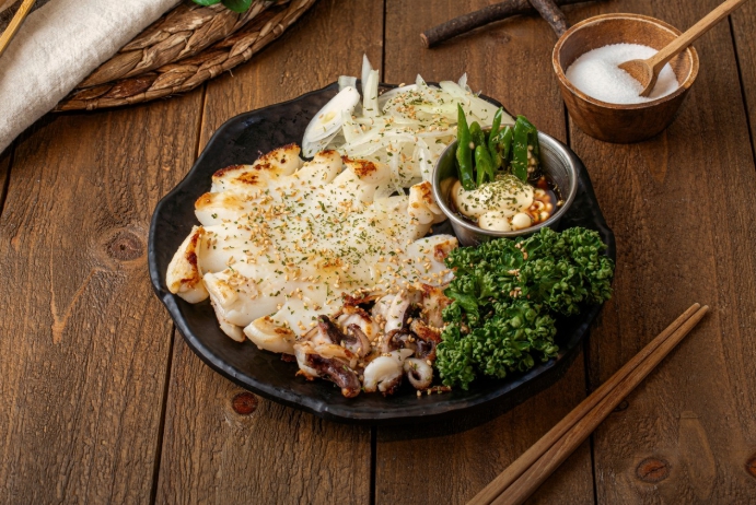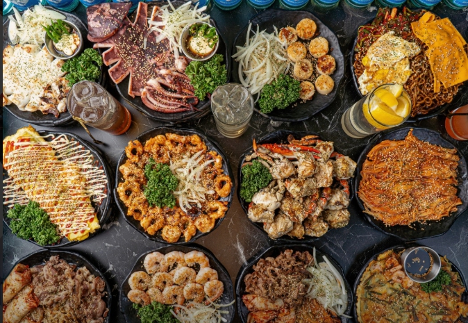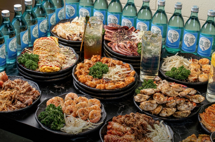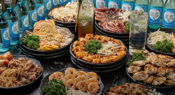 이곳의 메인 무대는 단연 철판입니다. 신선한 해산물과 육류가 철판 위에서 춤을 추듯 익어가는 모습을 볼 수 있습니다.