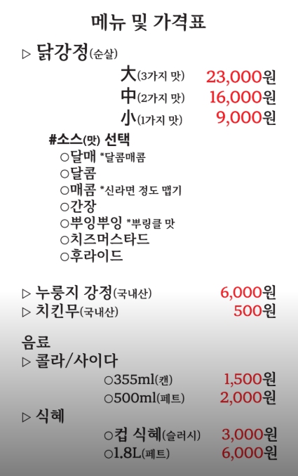 • 수제 누룽지 토핑: 일반 닭강정과 달리, 직접 만든 바삭하고 구수한 누룽지가 함께 버무려져 나옵니다. 바삭한 닭강정과 오독오독 씹히는 누룽지의 식감 조화가 예술입니다.