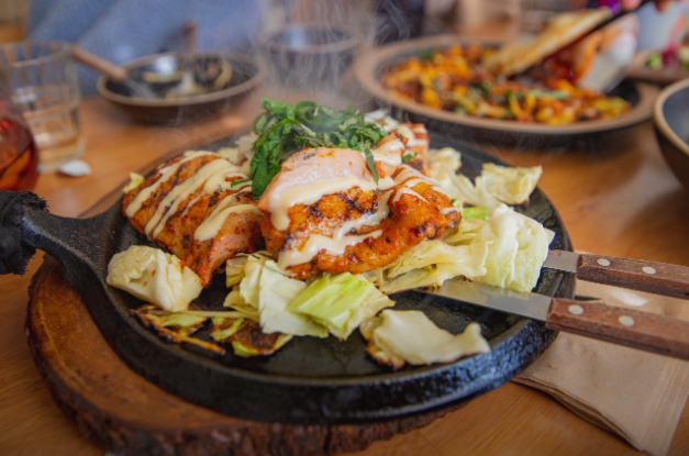 • 숯불 향을 입혀 구워낸 두툼한 목살 스테이크는 육즙이 가득하고 부드럽습니다. 샐러드와 함께 제공되어 든든한 한 끼로 손색이 없습니다.
