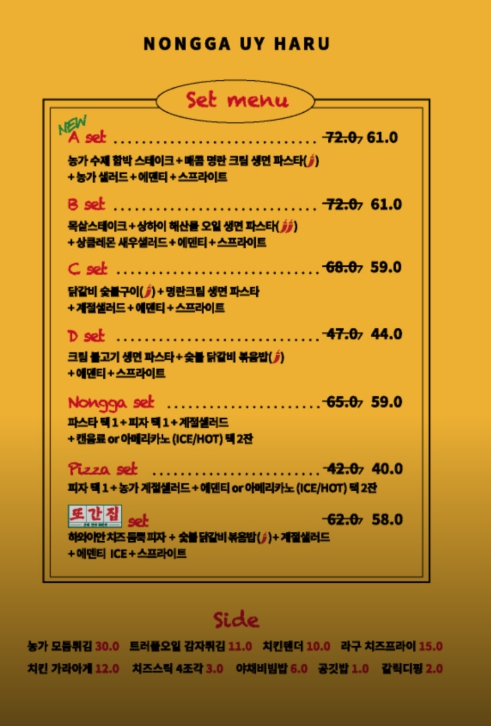 '농가의하루'는 동양과 서양의 농가 스타일을 조화롭게 풀어낸 퓨전 레스토랑입니다. 제철 식재료를 활용해 건강하고 푸짐한 식탁을 차려내는 것이 특징이죠.
