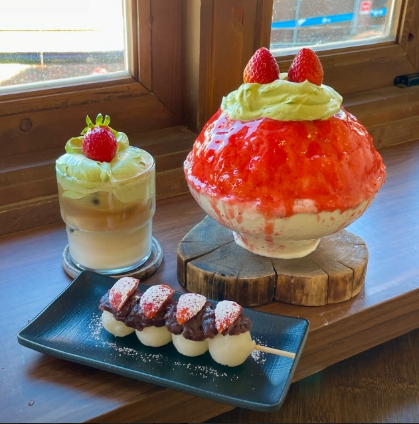마치 일본 교토의 고즈넉한 마을에 온 듯한 분위기 속에서, 어디서도 보지 못한 이색적인 빙수와 당고를 즐길 수 있습니다.