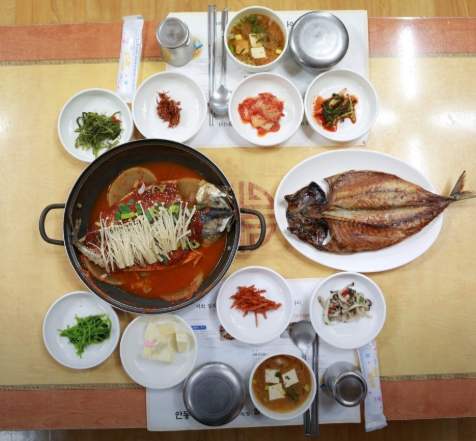 - 안동간고등어조림 정식: 칼칼한 양념이 밴 무와 고등어의 조화가 일품인 메뉴.