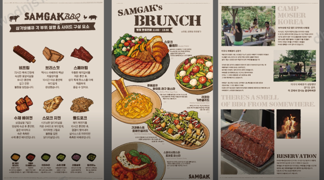 '삼각바베큐'는 1970년대 양주 해랑마을에 주둔했던 미군부대 '캠프 모지어43'의 흔적 위에 세워진 곳입니다. 미군들이 즐기던 와일드한 텍사스 바비큐를 한국적으로 재해석한 로컬 퓨전 아메리칸 바베큐 전문점이죠.