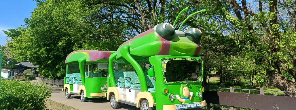 아이들과 넓은 경주 유적지를 걷기 힘들다면? 귀여운 비단벌레 차를 타고 편안하게 둘러보세요!