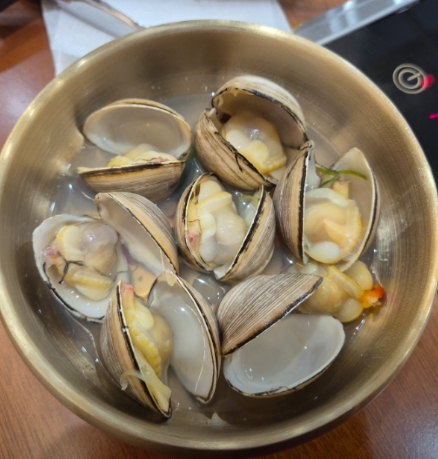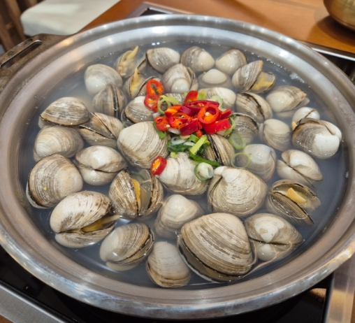 • 물총 조개탕: 고창에서 산지 직송한 싱싱한 동죽(물총조개)으로 끓여내 국물이 시원~하고 개운합니다. 매운 낙지와 찰떡궁합!
