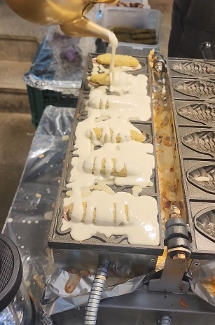 - 두바이 초코 붕어빵 (5,000원): 요즘 난리 난 두바이 초콜릿이 붕어빵 속에?! 1인 2개 구매 제한이 있을 정도로 귀한 몸입니다. 바삭한 카다이프와 진한 초콜릿의 만남, 이건 못 참죠! 🍫
