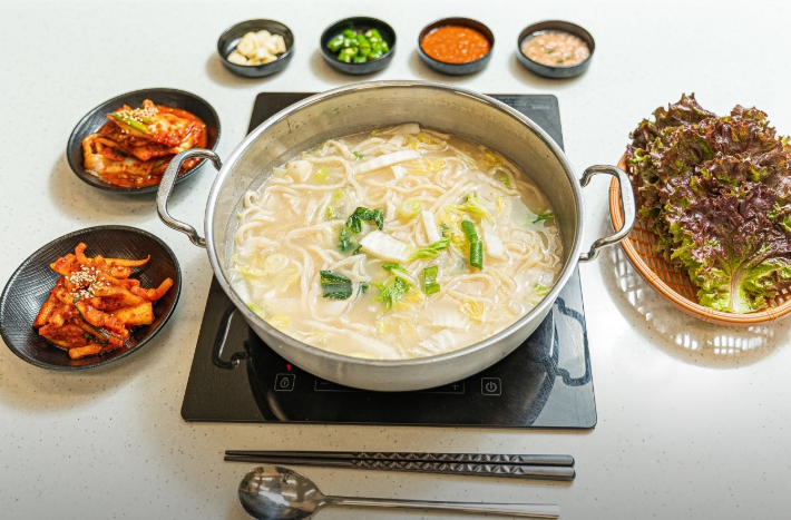 • 분말이나 엑기스가 아닙니다! 매일 정성으로 끓여낸 진한 한우 사골 육수를 사용해 국물 맛이 깊고 구수합니다. 칼국수의 생명은 육수인데, 한우 사골이라니 말 다 했죠?