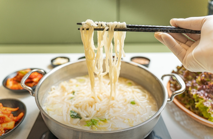 - 분말이나 엑기스가 아닙니다! 매일 정성으로 끓여낸 진한 한우 사골 육수를 사용해 국물 맛이 깊고 구수합니다. 칼국수의 생명은 육수인데, 한우 사골이라니 말 다 했죠?