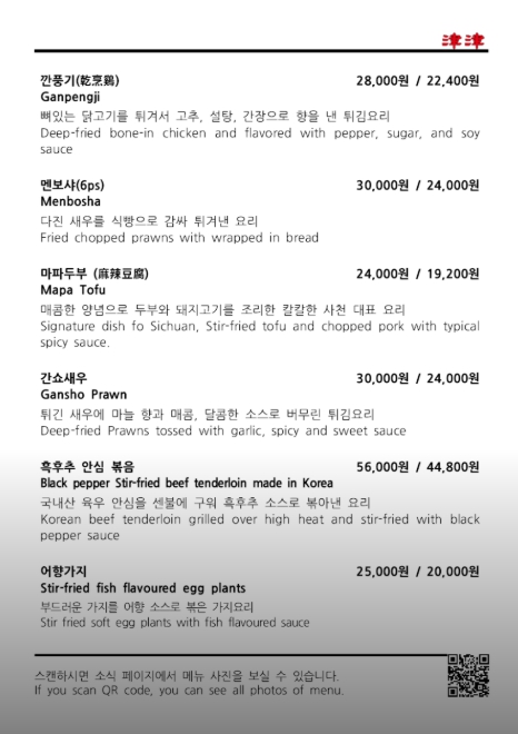 - 메뉴 특징: 짜장면, 짬뽕, 탕수육은 없습니다! 대신 대게살 볶음, 어향가지, 깐풍기 등 정통 요리에 집중한 진짜 요리집이에요.
