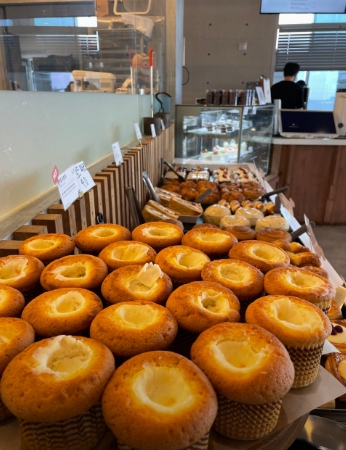 - 인절미 연탄빵: 고소한 인절미 가루가 듬뿍! 속에는 상큼한 블루베리잼과 부드러운 커스터드 크림이 꽉 차 있어 반전 매력을 선사합니다.