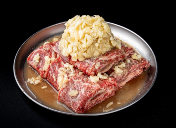 - 초가옥만의 비법 양념에 48시간 저온 숙성해 입에서 살살 녹는 부드러운 식감을 자랑합니다. 질긴 고기를 잘 못 씹는 아이들도 밥 한 공기 뚝딱 비워낼 마성의 맛이에요! 그 위에 듬뿍 올라간 마늘 폭탄이 고기의 풍미를 한층 더 깊게 끌어올려 줍니다.