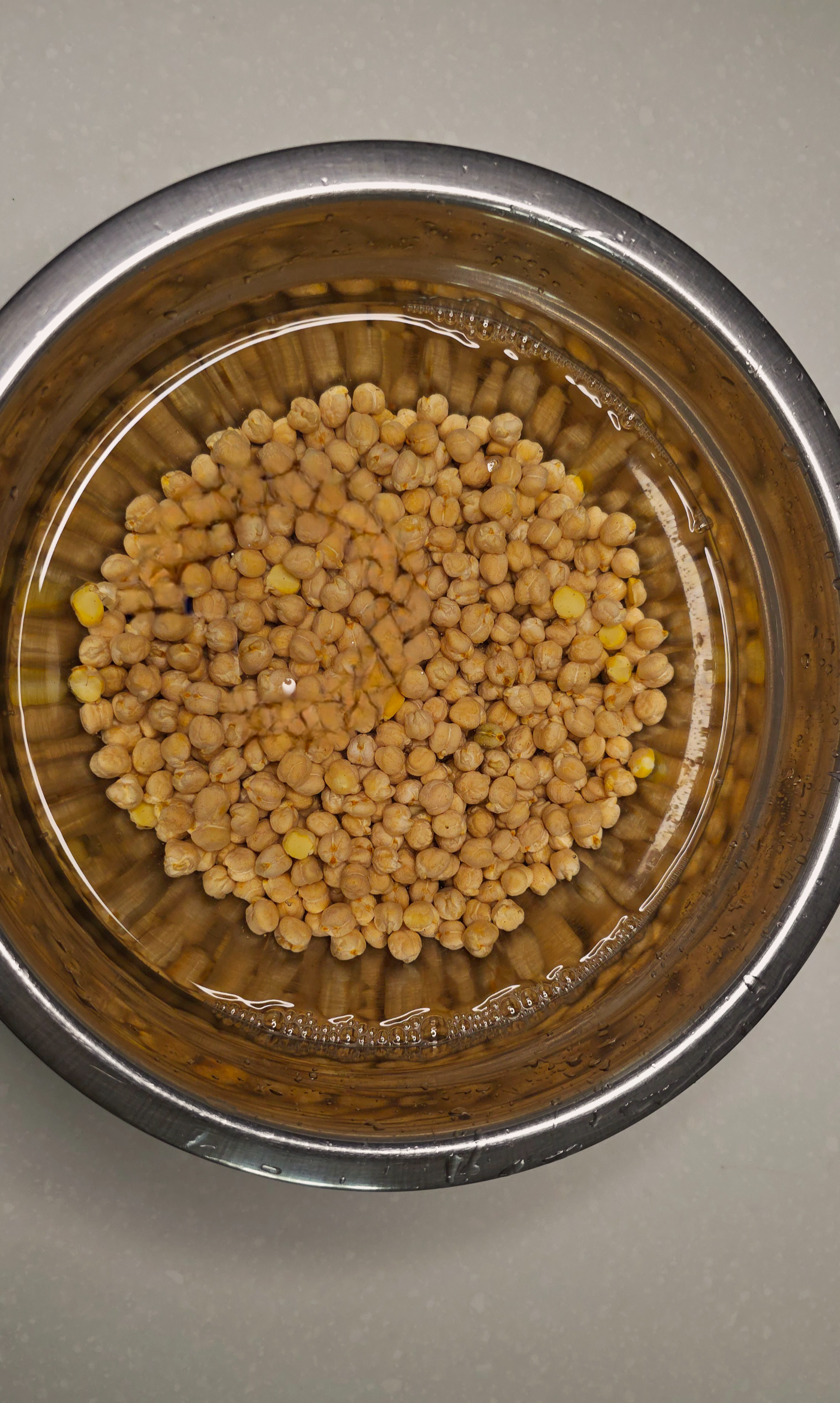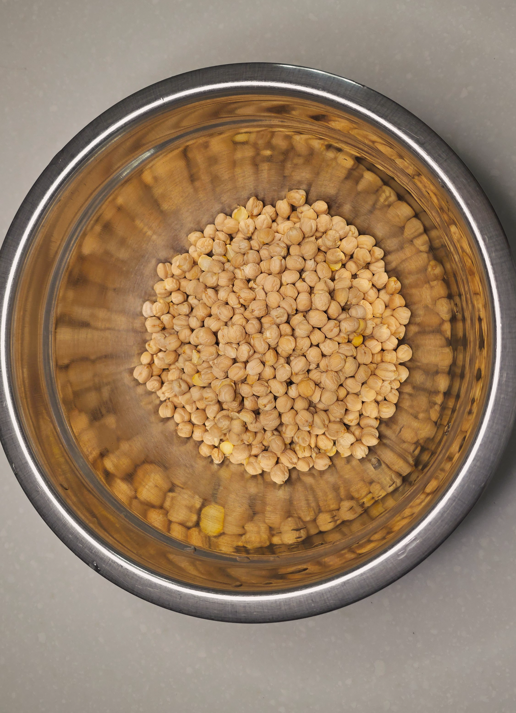 병아리콩을 두세 번 정도 휘리릭 세척한 후 병아리콩이 충분히 잠기도록 물을 부어주세요. (병아리콩의 2~3배)