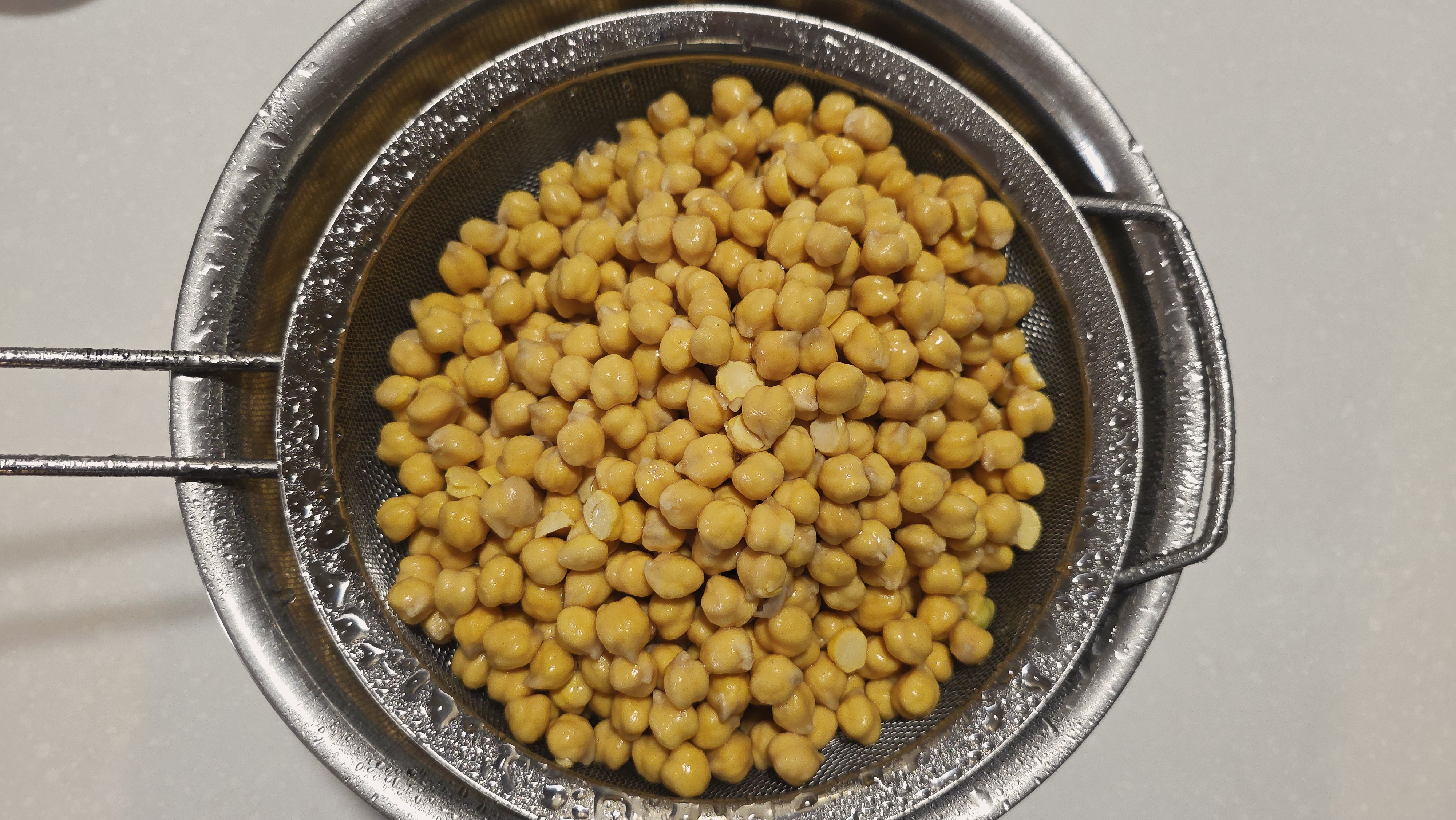 삶아진 병아리콩은 찬물에 헹궈 물기를 빼고 보관합니다.