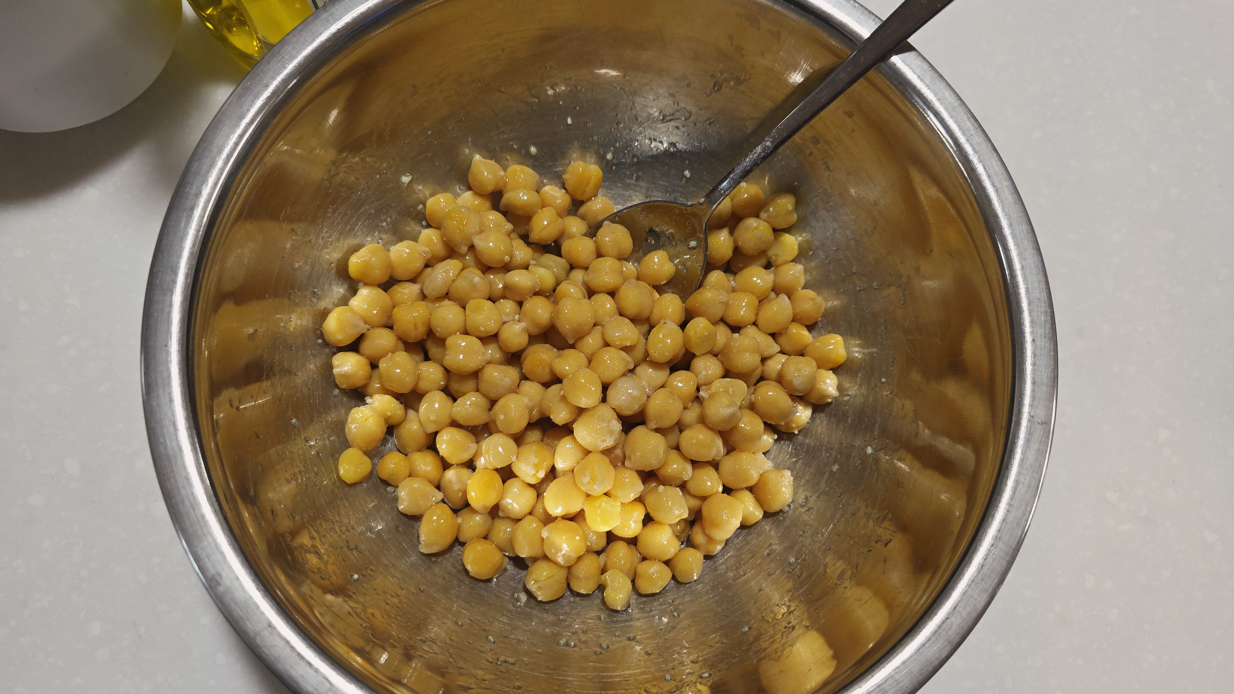 1. 병아리콩 준비 하루 정도 불린 병아리콩을 푹 삶아줍니다. 샐러드용보다 조금 더 단단하게 삶는 게 식감이 좋습니다.