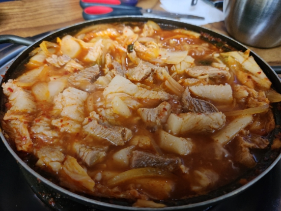푹 익은 김치라기보다는 새콤하면서도 시원한 맛의 김치를 사용하여, 남녀노소 누구나 호불호 없이 즐길 수 있는 깔끔한 맛을 자랑합니다. 특히 젊은 층에서 특히 선호할 만한 맛의 조화를 이루고 있어요.