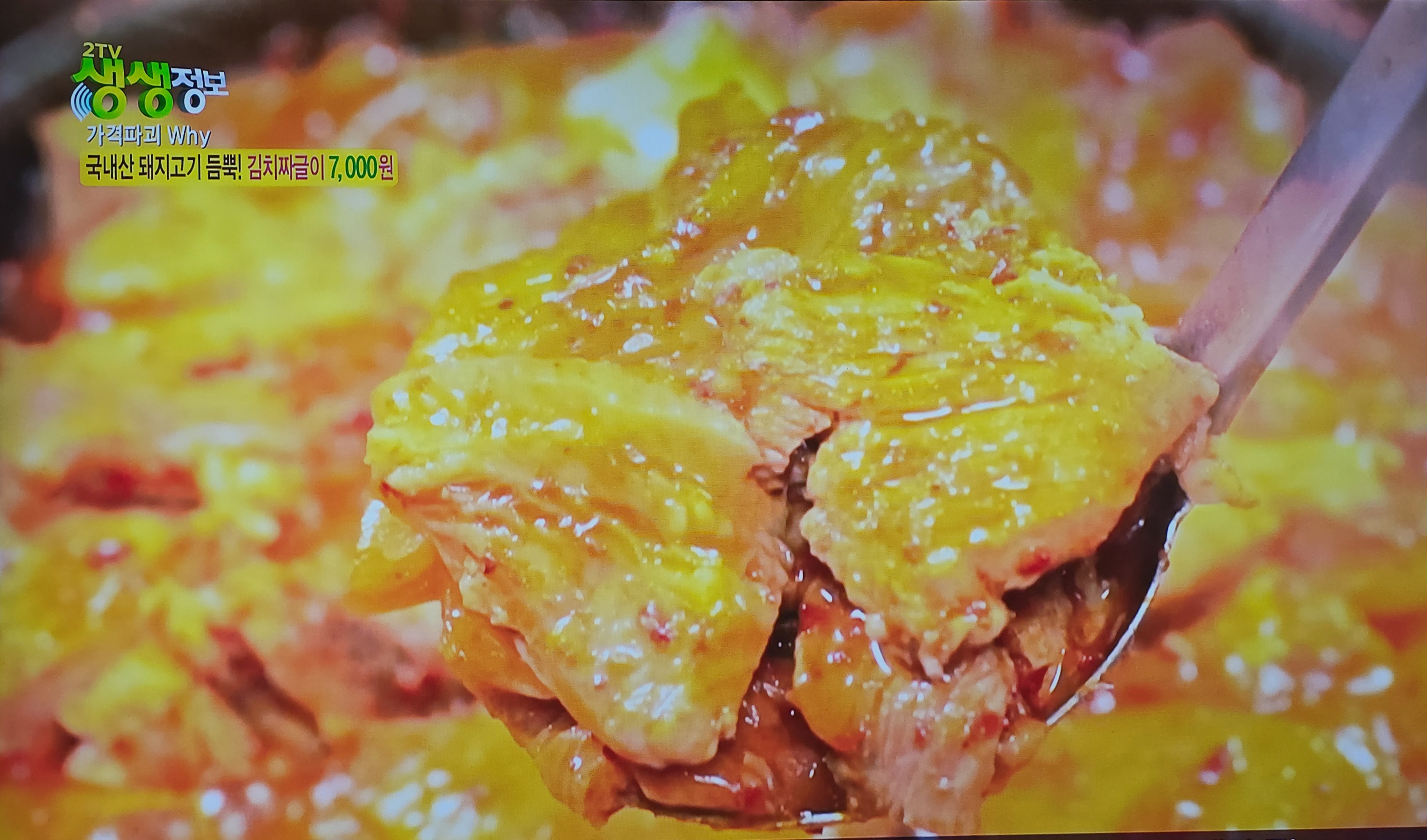 10월 14일 KBS2TV 생생정보 가격파괴 why 코너에서는 국내산 돼지고기가 듬뿍 들어간 김치짜글이가 소개됐어요.