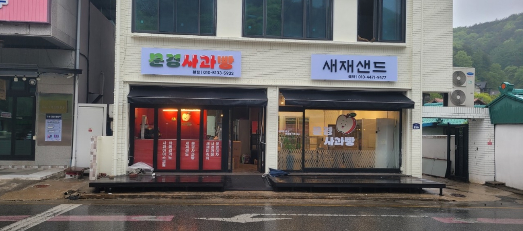 ‘문경사과빵’과 ‘새재샌드’라는 디저트 브랜드명을 함께 사용하며, 사과향 가득한 빵·샌드위치류를 판매하는 카페 형식의 매장으로, 사과의 고장 문경의 특산물 사과를 활용해 만든 디저트로, 여행 중 가볍게 들르기 좋은 공간입니다.