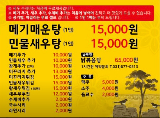 - 매운탕과 새우탕을 함께 먹어도 좋습니다.