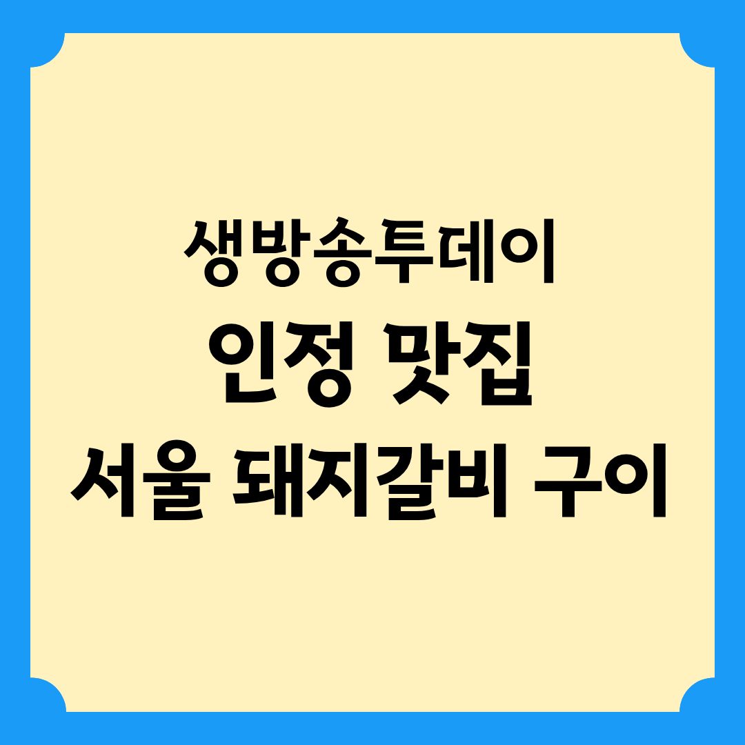 오늘 10월 24일 SBS '생방송투데이' 인정 맛집 코너 서울 돼지갈비구이 BEST 3에서 방송된 곳을 소개해드릴게요!