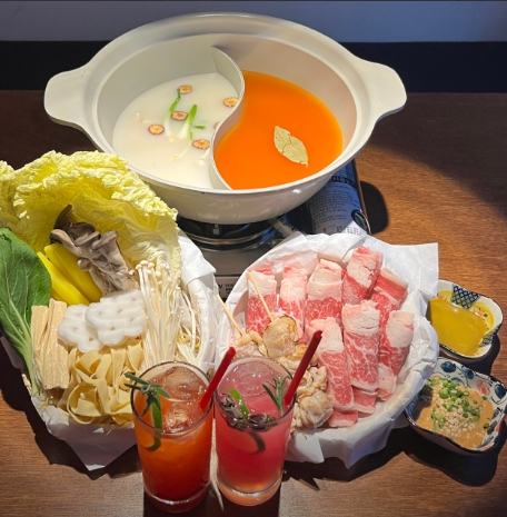 1. 시그니처 전골 메뉴와 함께 요구르트 크림 새우흑마늘 탕수육 등 이색 요리를 곁들여보세요. 다양한 맛을 즐기는 '대식가' 코스 완성!