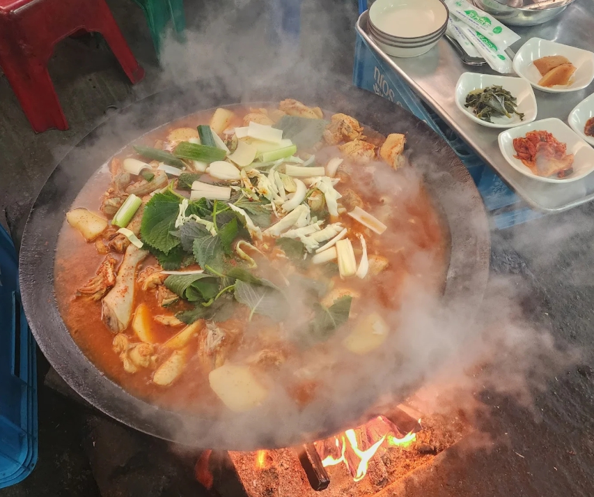 "장작불의 뜨거운 사랑과 할매의 깊은 손맛이 빚어낸, 가평 여행의 하이라이트! 솥뚜껑 닭매운탕은 감동 그 자체!"