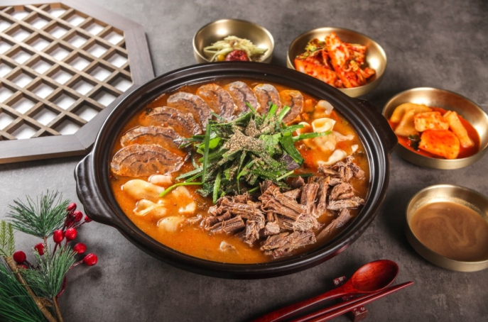 - 특징: 진하게 우려낸 육수에 부드러운 소고기와 신선한 채소가 푸짐하게 들어가 깊고 진한 맛을 자랑합니다. 찬 바람 불 때 온 가족이 함께 몸을 녹이며 보양하기 좋은 전골 메뉴입니다.