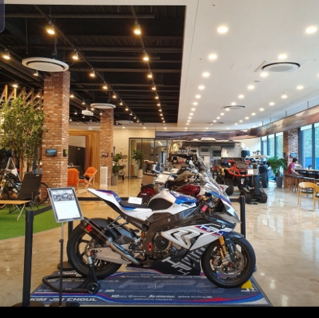 2. 이색 전시 공간: 1층 카페 내부에는 BMW 바이크를 비롯해 ATV, 제트스키, 캠핑용 트레일러 등 쉽게 접하기 힘든 특별한 이동 수단들이 상설 전시되어 있습니다. 라이더가 아니더라도 보는 재미가 쏠쏠합니다.