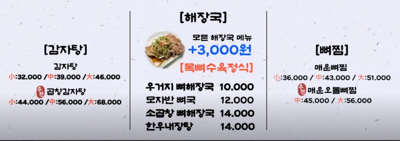 - 포장 & 혼밥도 OK: 24시간 운영(일부 매장)하며, 혼밥 손님도 끊이지 않는다고 하니, 뼈해장국으로 혼자서도 든든하게 즐길 수 있습니다.