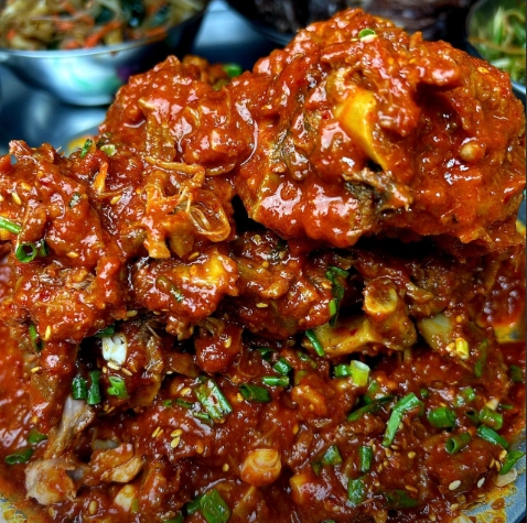 2. 고기 외에 인기 메뉴: 매운 뼈가지찜과 우렁짜박장, 들기름막국수도 별미입니다.