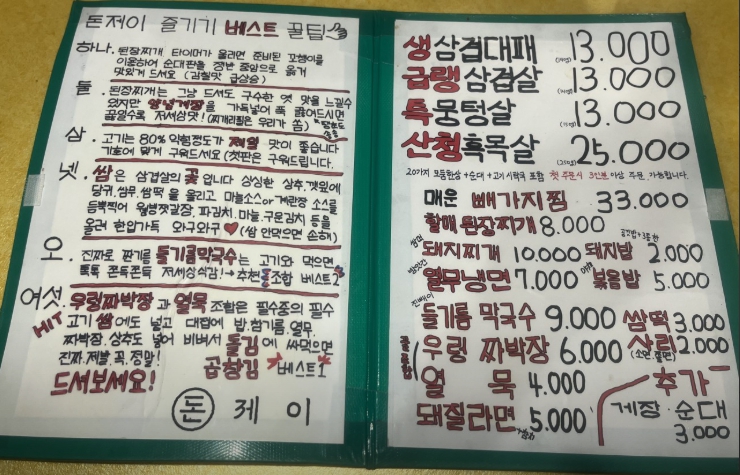 1. 생대패 & 흑목살 반반 추천: 두 가지 주력 메뉴를 모두 맛볼 수 있도록 적절히 섞어 주문하는 것을 추천합니다.