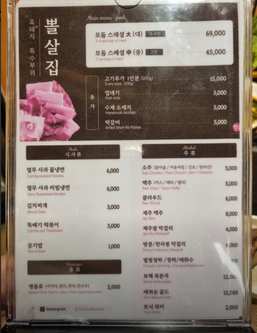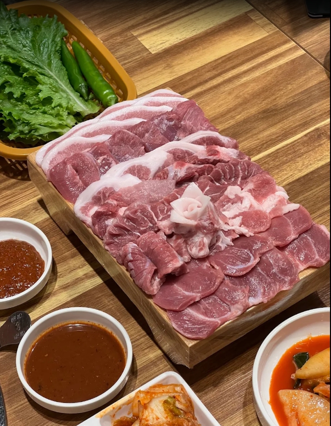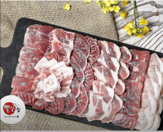 - 구성: 천겹살, 비단살, 눈썹살, 뽈살, 꽃살, 돈새살 등의 특수부위 구이