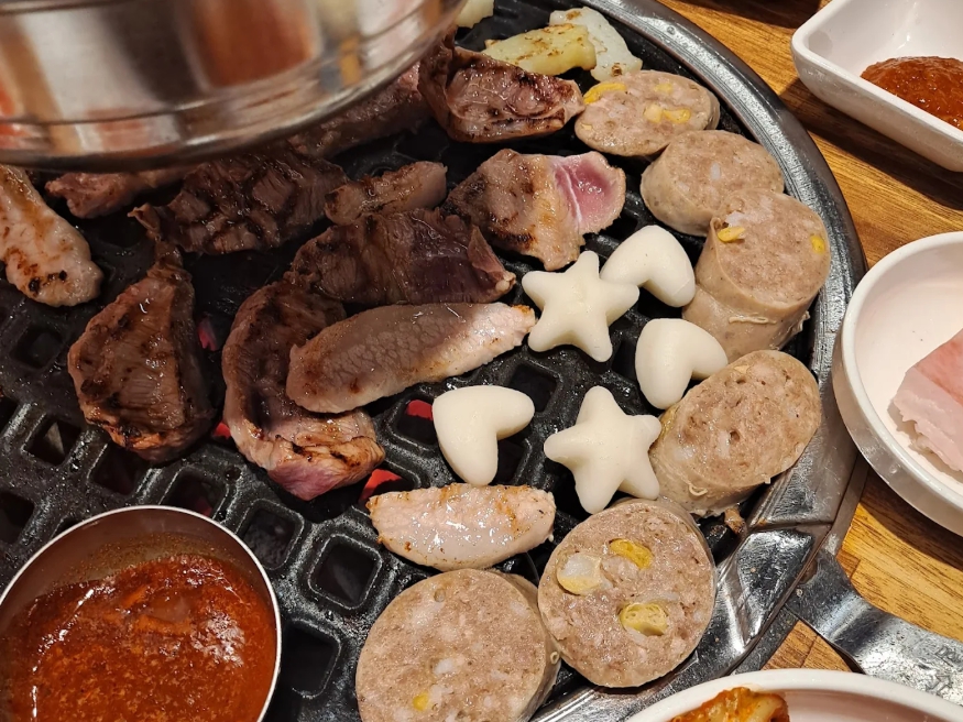 - 소시지 & 껍데기: 도톰한 수제 소시지와 쫄깃한 돼지껍데기가 기본으로 제공되어 다양한 구이 맛을 즐길 수 있습니다.