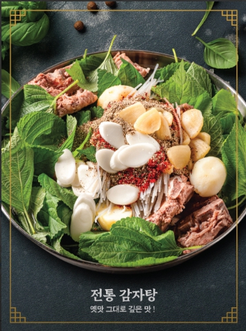 - 메뉴 소개: 큼지막한 등뼈와 구수한 우거지, 그리고 깻잎과 들깨가루가 듬뿍 들어간 정석 스타일의 감자탕입니다.