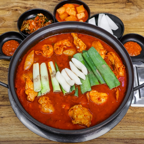 - 메뉴 소개: 국물 없이 매콤 달콤한 특제 양념에 큼지막한 등뼈와 아삭한 콩나물, 쫄깃한 떡 등을 듬뿍 넣고 쪄낸 요리입니다.