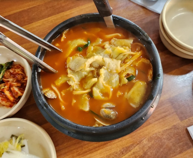 - 마성의 식감: 밀가루 냄새 없이 쫄깃쫄깃한 수제비 반죽이 이곳의 최대 무기입니다.